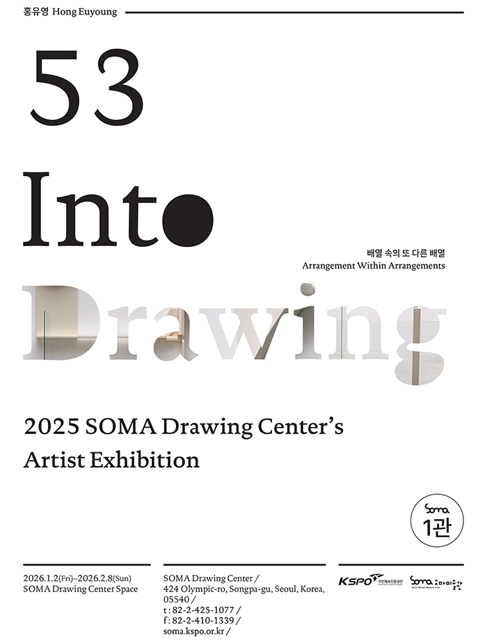 국민체육진흥공단(이사장 하형주) 소마미술관은 오는 1월 2일부터 2월 8일까지 홍유영 작가의 개인전 《배열 속의 또 다른 배열》을 개최한다. 소마미술관은 드로잉센터 공모전을 통해 선정된 작가를 조명하는 《Into Drawing》전시를 지속적으로 운영하고 있다. 2026년 《Into Drawing 53》에서는 2024년 작가 공모를 통해 선정된 세 명의 작가 전시를 선보이며, 그 세 번째 전시로 홍유영 작가의 개인전을 소개한다. 홍유영 작가는 경계가 흐릿하고 투명한 형상을 지닌 유리의 물성을 매개로, 공간 속 빛과 그림자에 따라 작품의 내부와 외부를 다층적으로 바라볼 수 있는 유리 오브제 작업을 선보인다. 유리의 층위, 해체된 사물의 재구성, 그리고 빛과 물성이 만들어내는 관계를 통해 작품들 간의 구조적 연결성을 형성한다. 이번 전시는 유리의 투명한 물성을 통해 빛과 공간, 사물과 구조의 관계를 재조명하며, 경계가 흐려진 시선 속에서 작품들이 유기적으로 연결되는 감각적 경험을 제안한다.