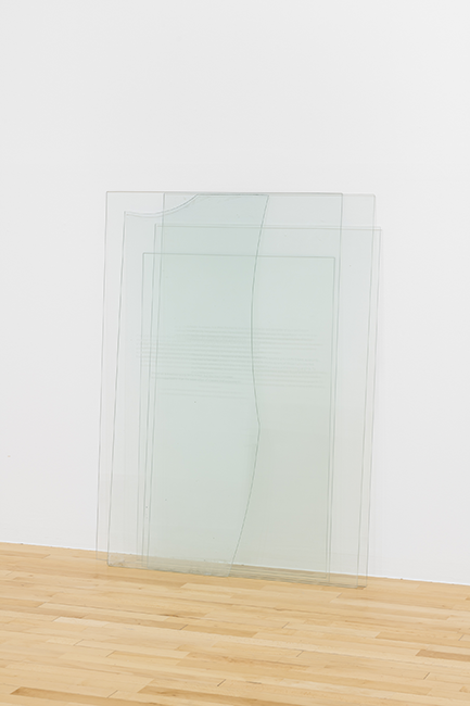 작품 “배열 속의 또 다른 배열(Arrangement within arrangements)”은 이러한 조형적 사유를 분명하게 드러낸다. 크기와 모양이 서로 다른 유리판들이 적층적으로 놓인 이 작품은 유리의 투명성, 면의 중첩, 빛의 반사와 그림자가 결합하여 하나의 다층적 배열을 구축한다. 각 유리판은 독립된 조형적 단위로 존재하지만, 투명한 물성을 통해 서로의 구조를 비추고 겹쳐 보이게 하며 새로운 배열의 관점을 생성한다. 이는 물리적 구조물의 결합을 넘어, 관람자의 위치와 움직임에 따라 매 순간 변화하는 관계적 배열을 보여준다. 유리의 중첩과 그 경계가 만들어내는 그림자의 농담(濃淡, light and shade)은 전시 공간과 자연스럽게 결합된다. 마치 네거티브 필름(Negative film)을 통과한 빛이 이미지를 만들어 사진이 완성되듯, 작품의 완성은 제작이 끝난 시점이 아니라, 공간 속에서 빛과 그림자가 더해지는 순간에 이루어진다.